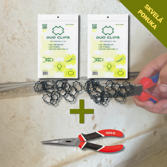 DuoClips – Drážková spona na montáž káblov alebo rúr - 2 balenie (200 kus) + 1 Kliešte predĺžené rovné